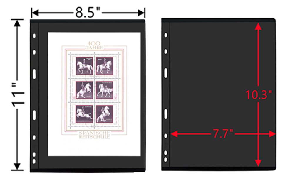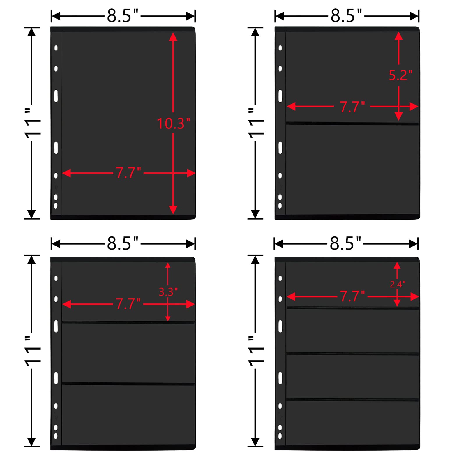 1 row page : 30 sheets/pack, Size: 11" x 8.5", Pocket Size: 10.3" x 7.7";