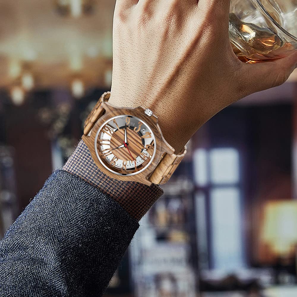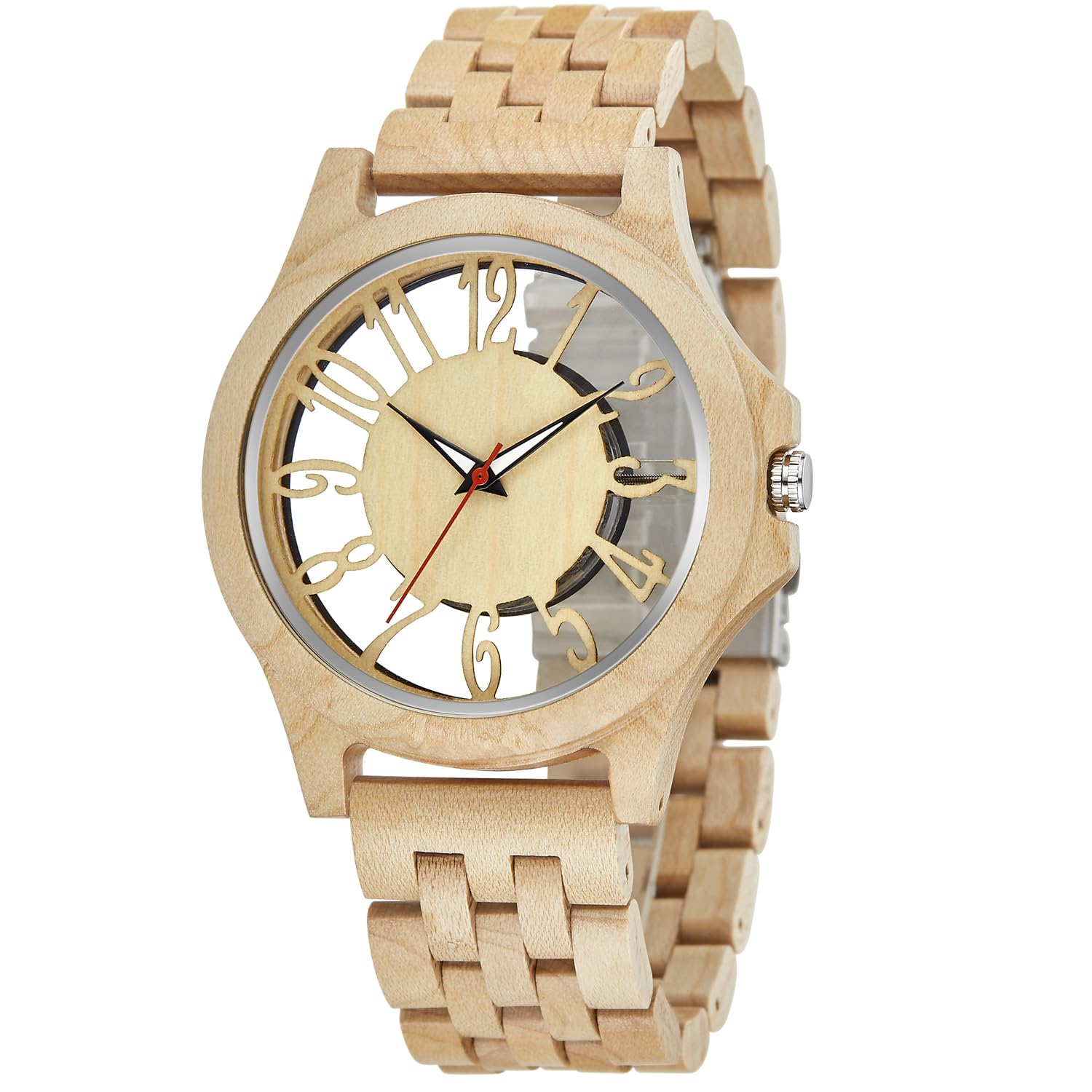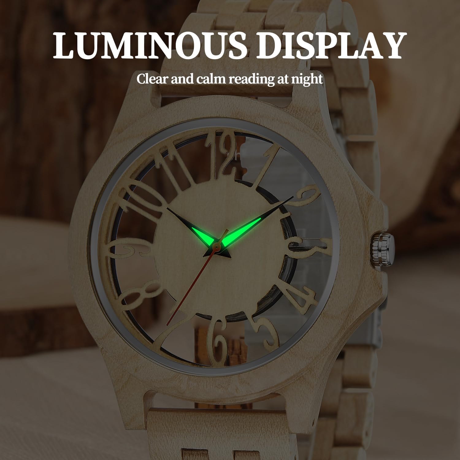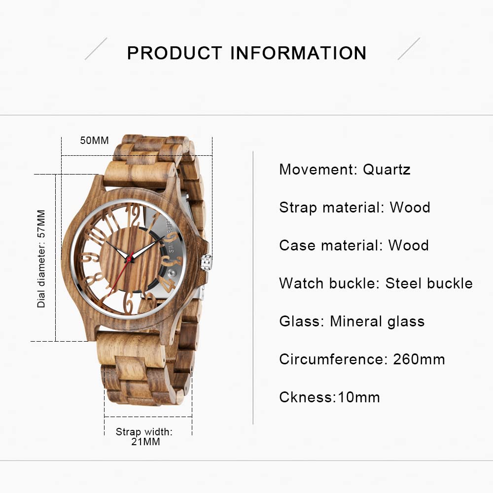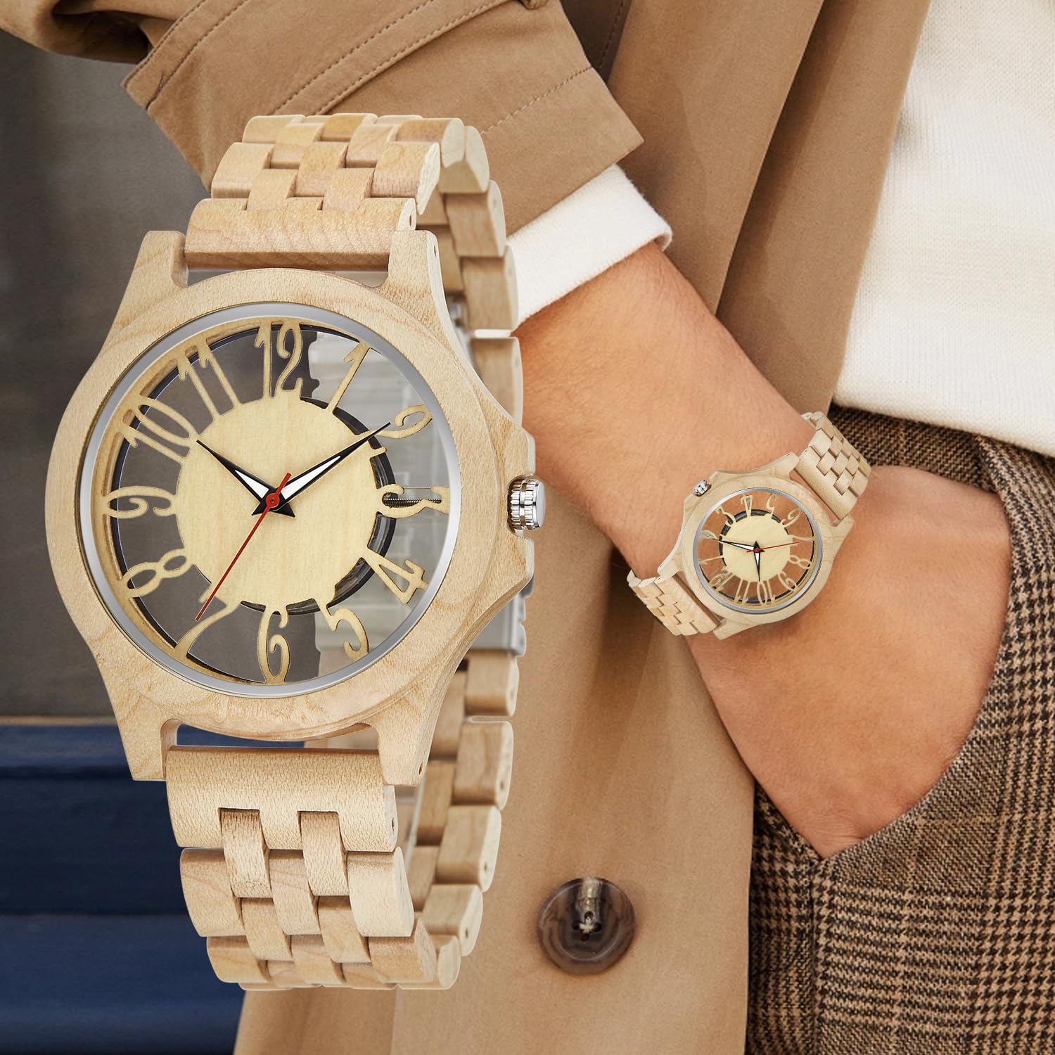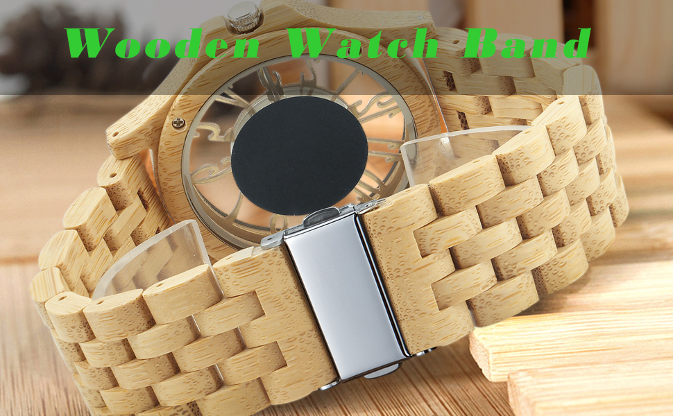 - Wooden Material: The wooden strap is made of natural wood, which is low allergenic and adjustable. The surface of this wooden watch is smooth and lightweight, making it comfortable to wear.